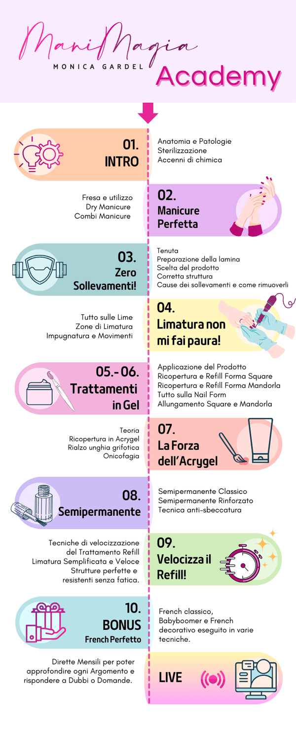 Ogni Modulo della Magic Academy è pensato per darti la sicurezza che ti è sempre mancata: la struttura sarà perfetta, la limatura definita e il colore impeccabile.