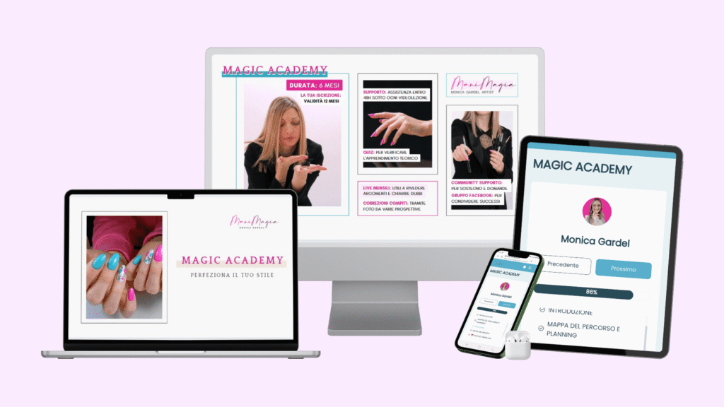 All’interno della Magic Academy, ho raccolto le migliori strategie per creare unghie impeccabili, strutture precise e lavori puliti, insegnandoti a perfezionare ogni dettaglio con semplicità e sicurezza.