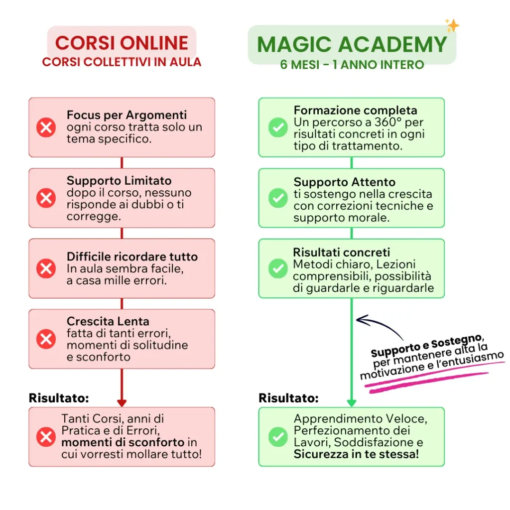 Ogni Lezione è studiata per velocizzare il tuo apprendimento e semplificare il tuo lavoro, anticipando i tuoi dubbi. Il mio Supporto continuo e attento ti farà sentire sicura, sapendo di avere qualcuno al tuo fianco su cui poter contare.